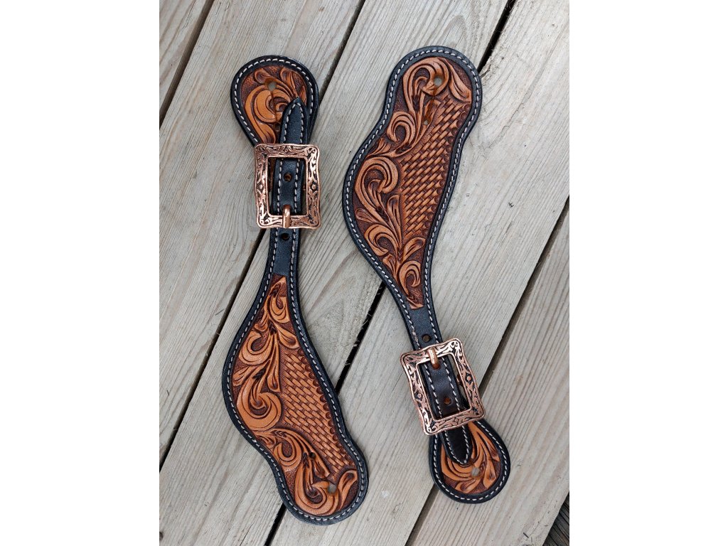 Westernové řemínky na ostruhy, černá/hnědá/měděná