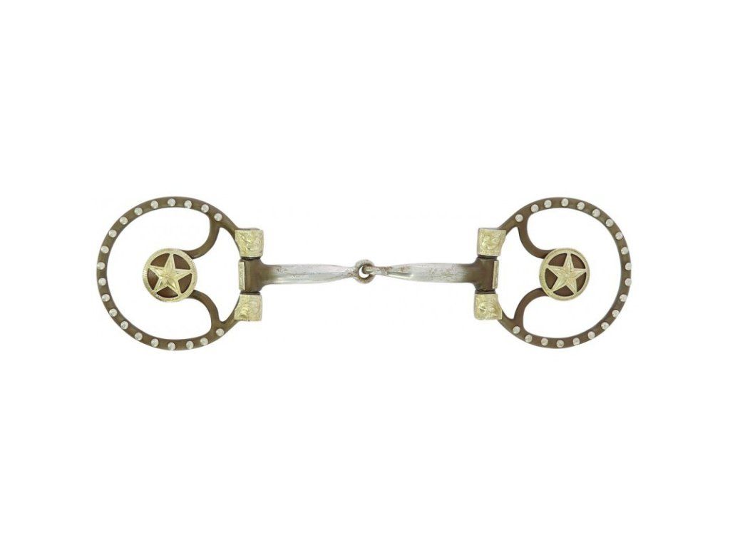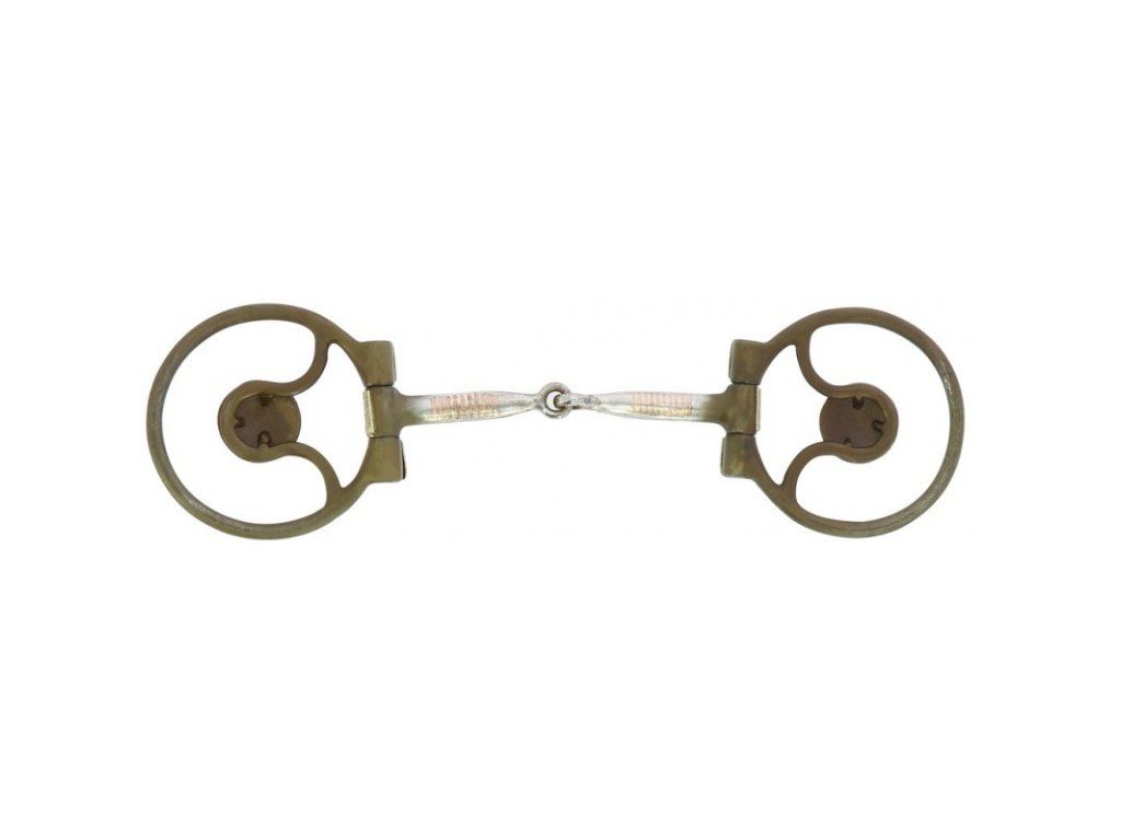 Honosně zdobené westernové udidlo s udítkem, které je vykládáno měděnými vložkami. Díky tomu bude koník spokojeně přežvykovat. Kroužky udidla jsou zdobené stříbrnými aplikacemi. Velikost uni 12,5cm