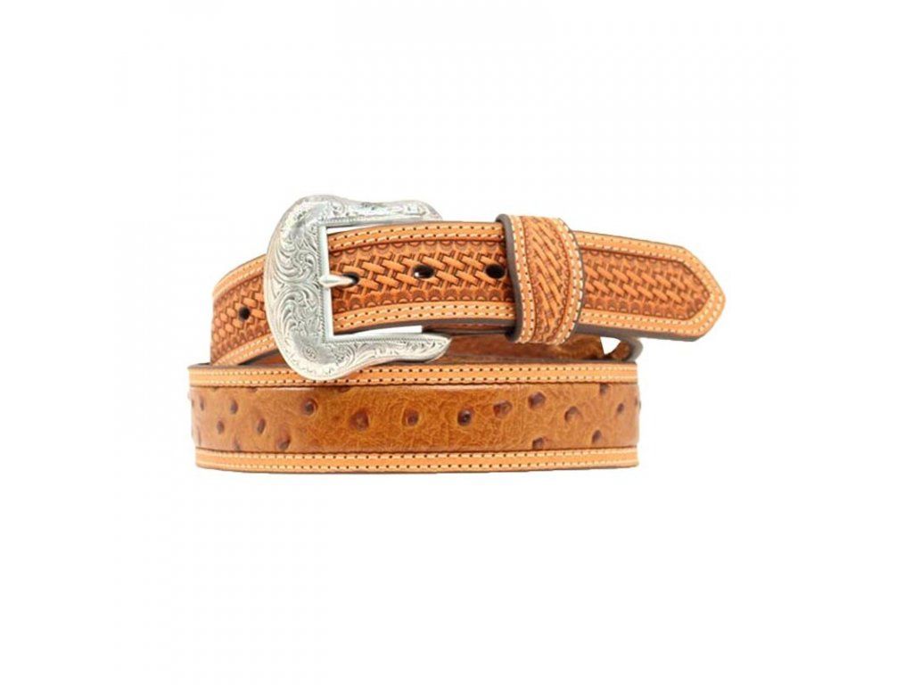 Opasek v mimořádném vzhledu pštrosí kůže. Tento kožený opasek přesvědčí svým elegantním designem z pštrosí kůže.