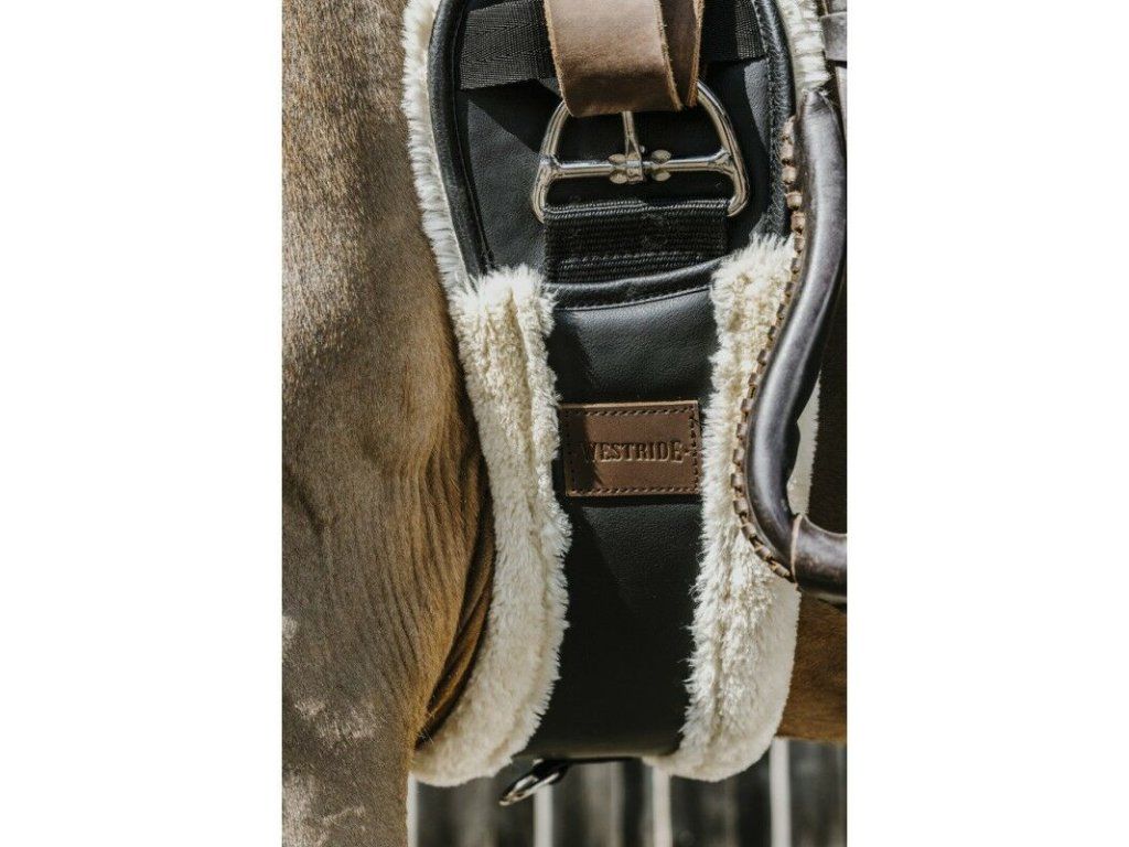 Anatomický westernový podbřišník s extra měkkou syntetickou ovčí kůží. Pro citlivé koně.