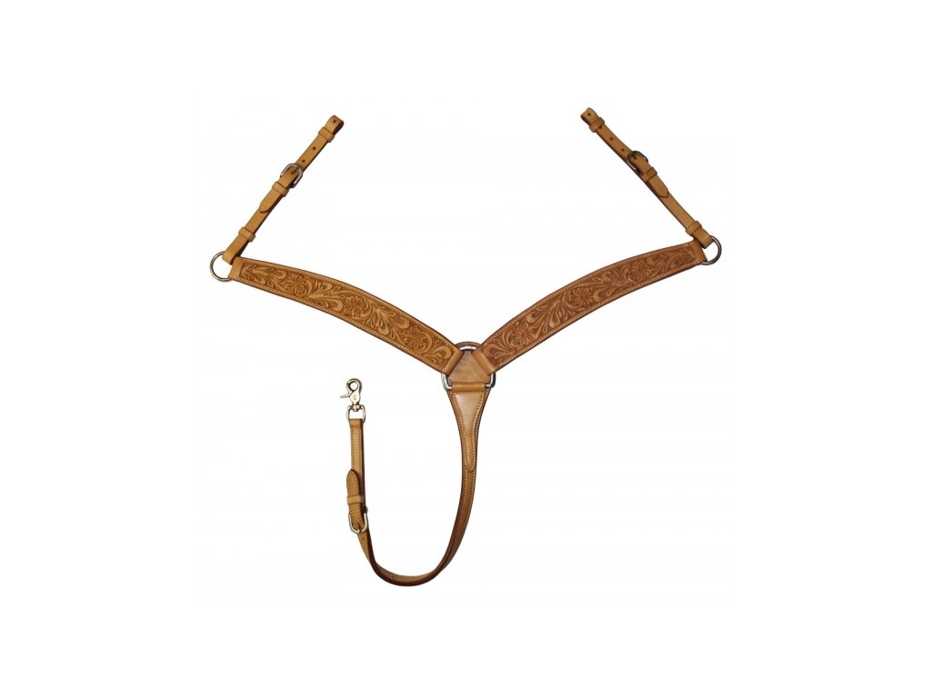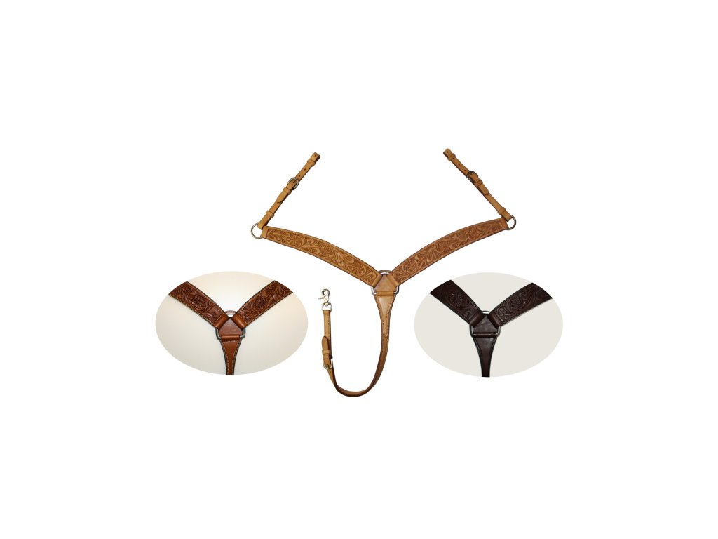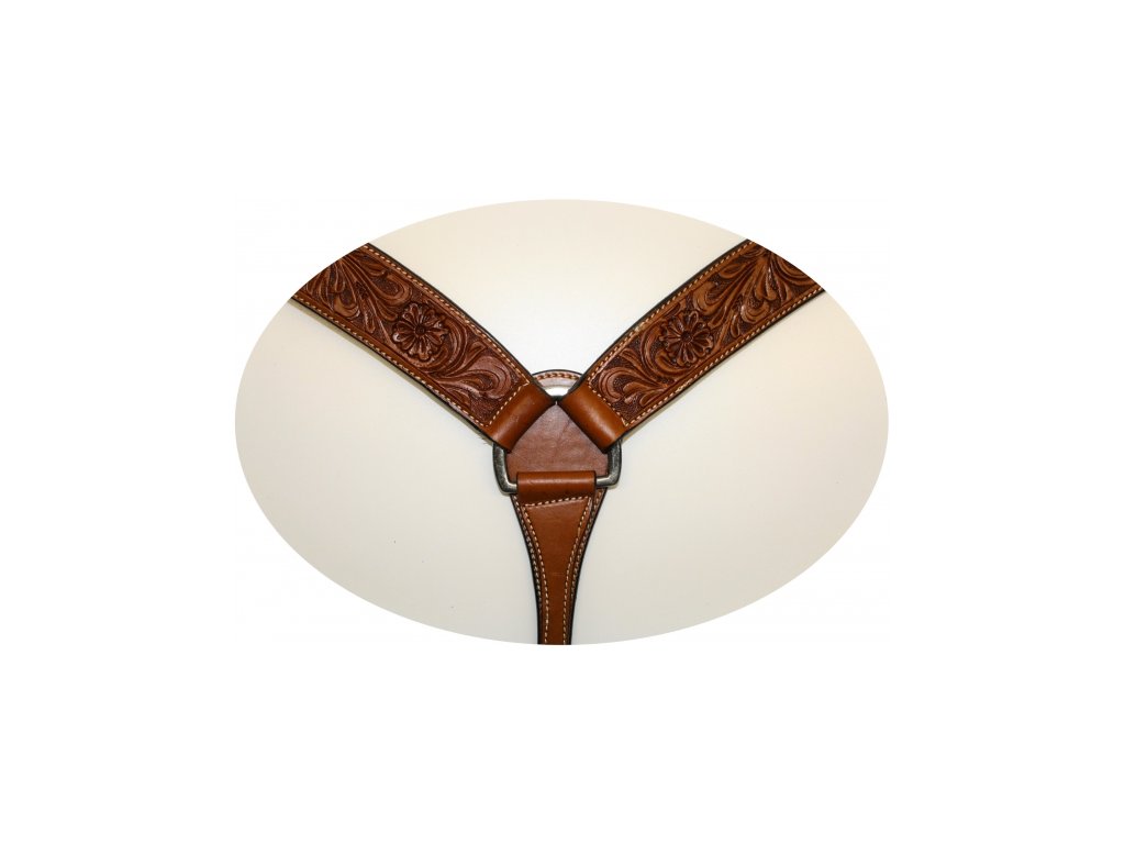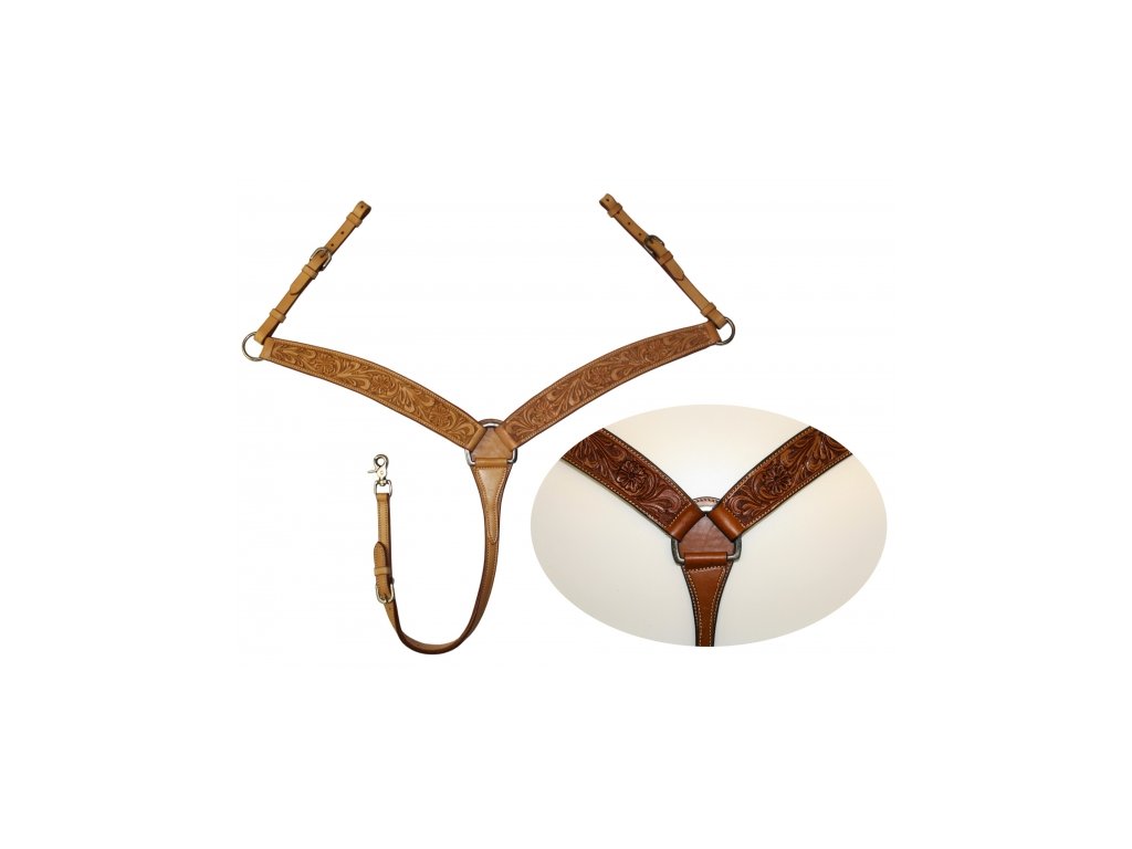 Westernový kožený poprsák s květinovým vzorem. Velikost QH/cob s nastavitelnými řemínky