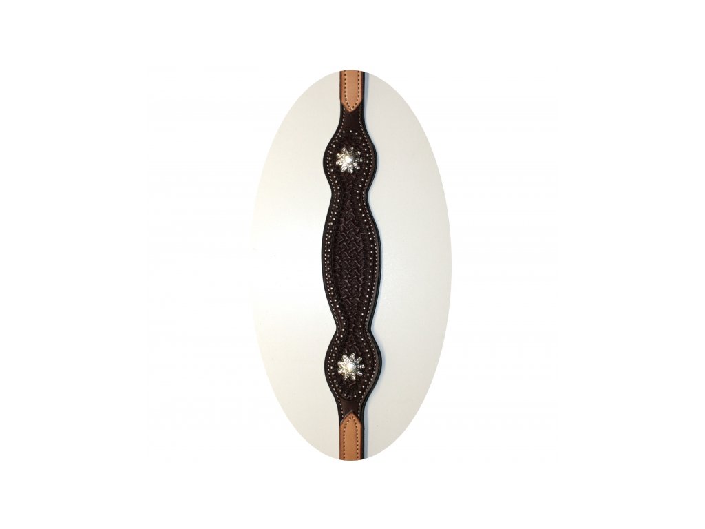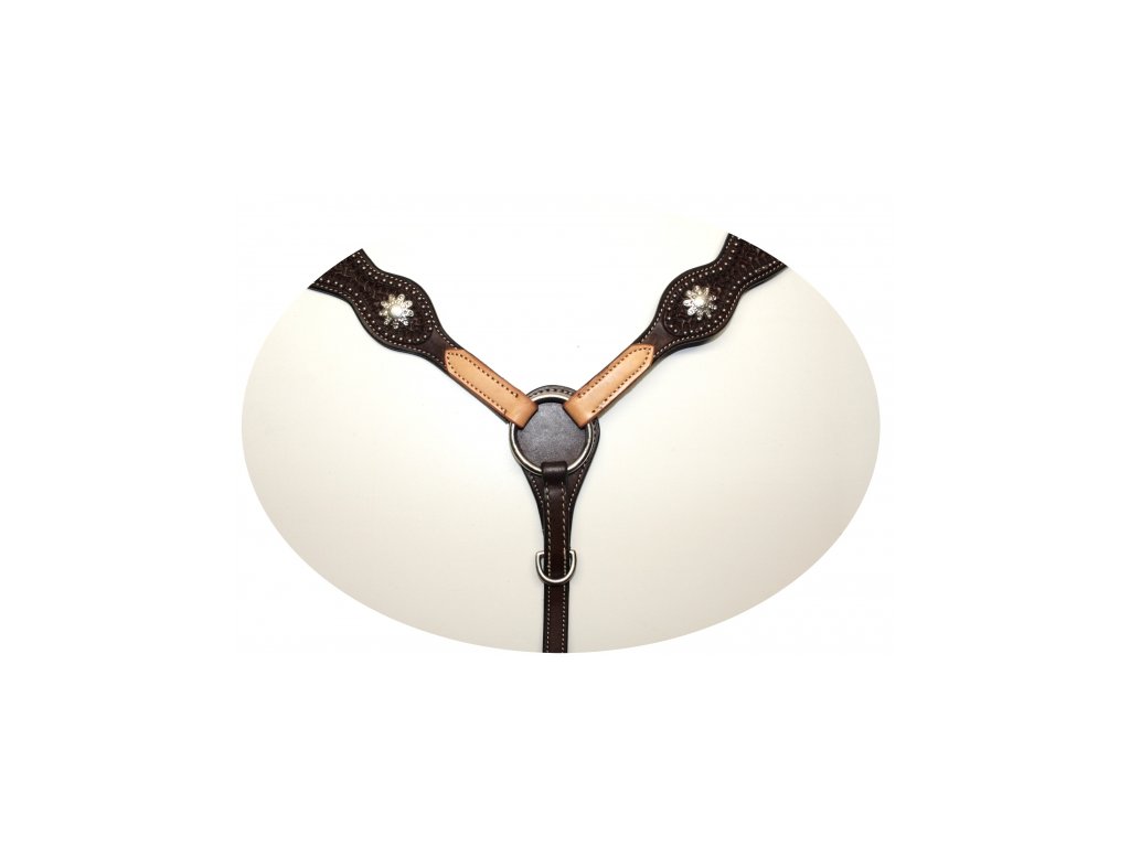 Westernový poprsák z přírodní světlé barvě kůže v kombinaci s tmavě hnědou kůží doplněnou o květinové akcenty