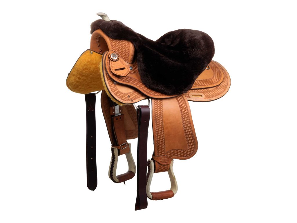 Beránek je určen pro westernová sedla a přizpůsobí se tvaru posedlí bez narušení stability sedu. Přirozené termoregulační vlastnosti jehněčí kůže pomáhají udržovat optimální teplotu – v zimě hřeje a v teplejším počasí odvádí vlhkost.