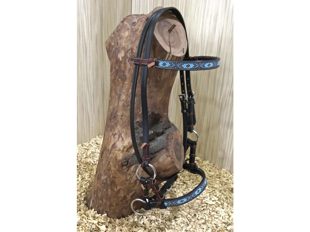 Westernový sidepull zdobený modrými korálky, full