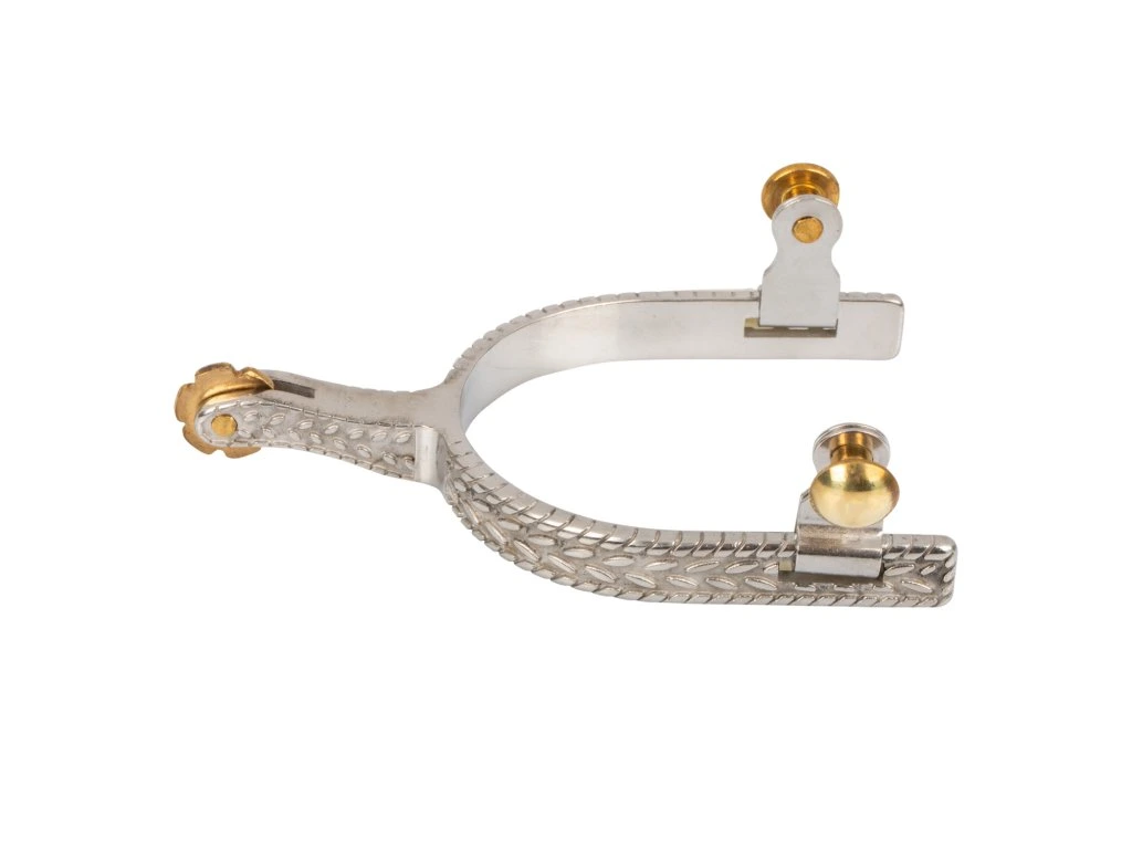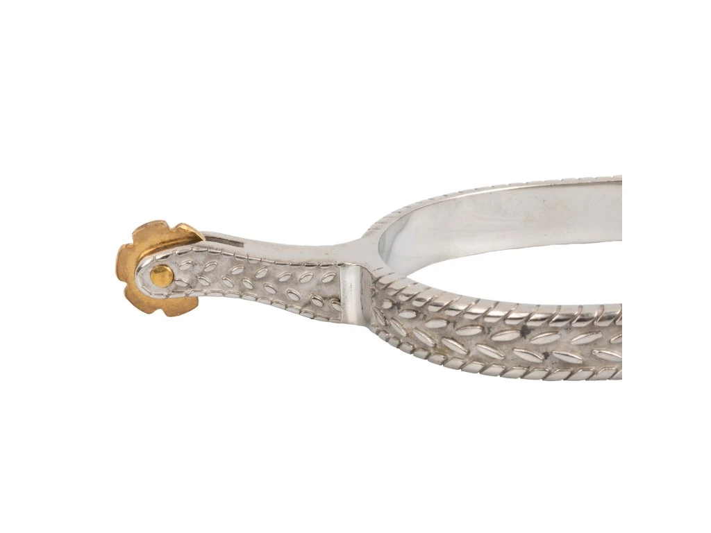 Ostruhy jsou vyrobeny z nerezové oceli, která zajišťuje vysokou pevnost, odolnost proti korozi a dlouhou životnost. Povrch je doplněn o strukturované zdobení, které dodává ostruhám výrazný charakter.