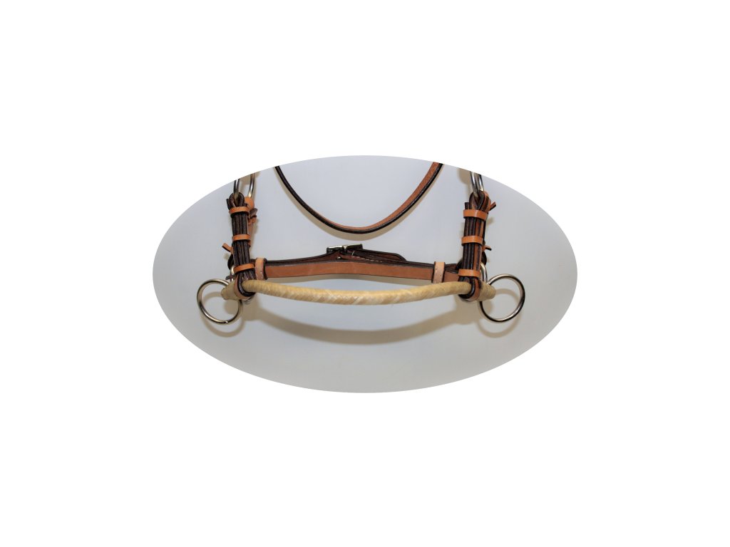 Měkký nánosník upletený z rawhide, který doporučujeme pro jemnější práci. Rawhide se pěkně přizpůsobí tvaru nosu koně.